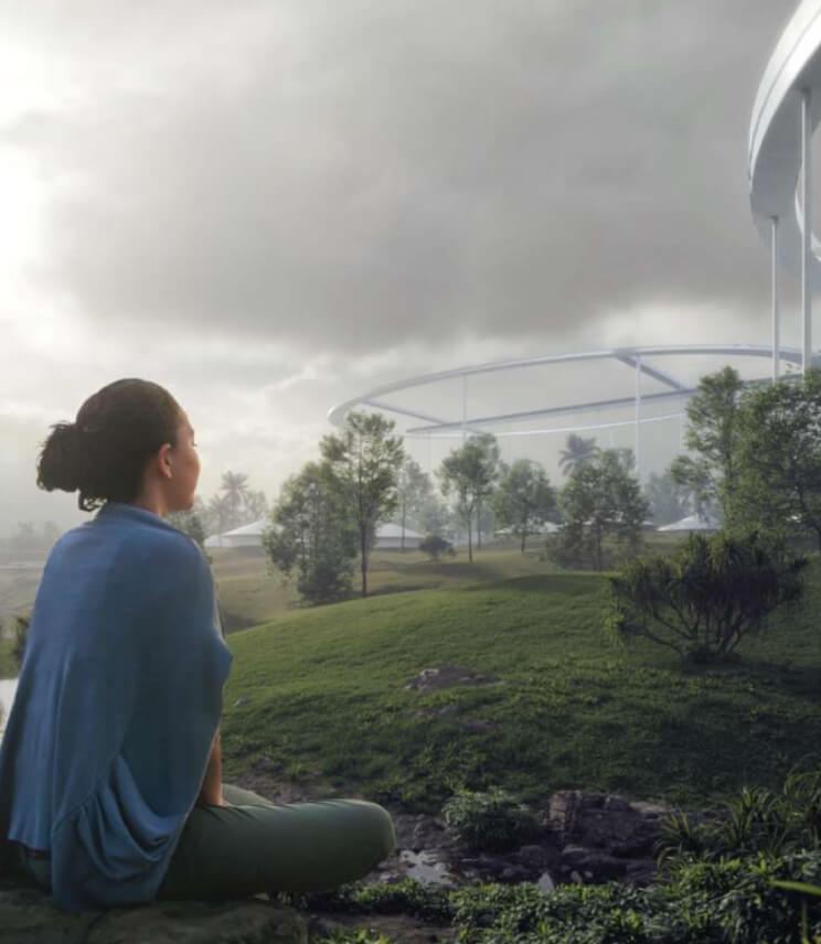 The area consists of 3 spaces: The Egg, The Wall, and The Hill. The Egg is a Bali event space on 4 levels. A rented space out as a whole venue or parts of it for art, science, and technology exhibitions, industry fairs. The Wall is a commercial area and residential hotel development. A logical addition to the expo with shops, cafes, rooftop bars, etc. The Hill is a landscapes gardens, picnic grounds, and space for open-air exhibitions.